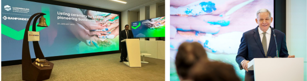 El pasado 20 de enero se celebró la ceremonia oficial del Toque de Campana con motivo del listado del primer Bono Sostenible de BANFONDESA en la Bolsa de Valores de Luxemburgo (Luxembourg Stock Exchange (LuxSE)), cotizando por unos EUR$3.3 millones, marcando un hito histórico para el Mercado de Valores de la República Dominicana.