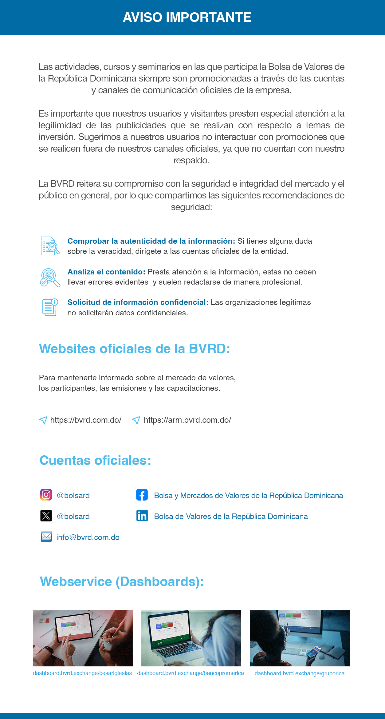 Manténgase actualizado en relación a las actividades y novedades de la BVRD y del mercado de valores.
